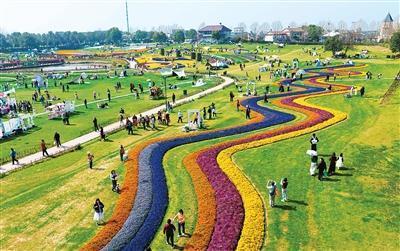游客在武汉花博汇赏花游览。